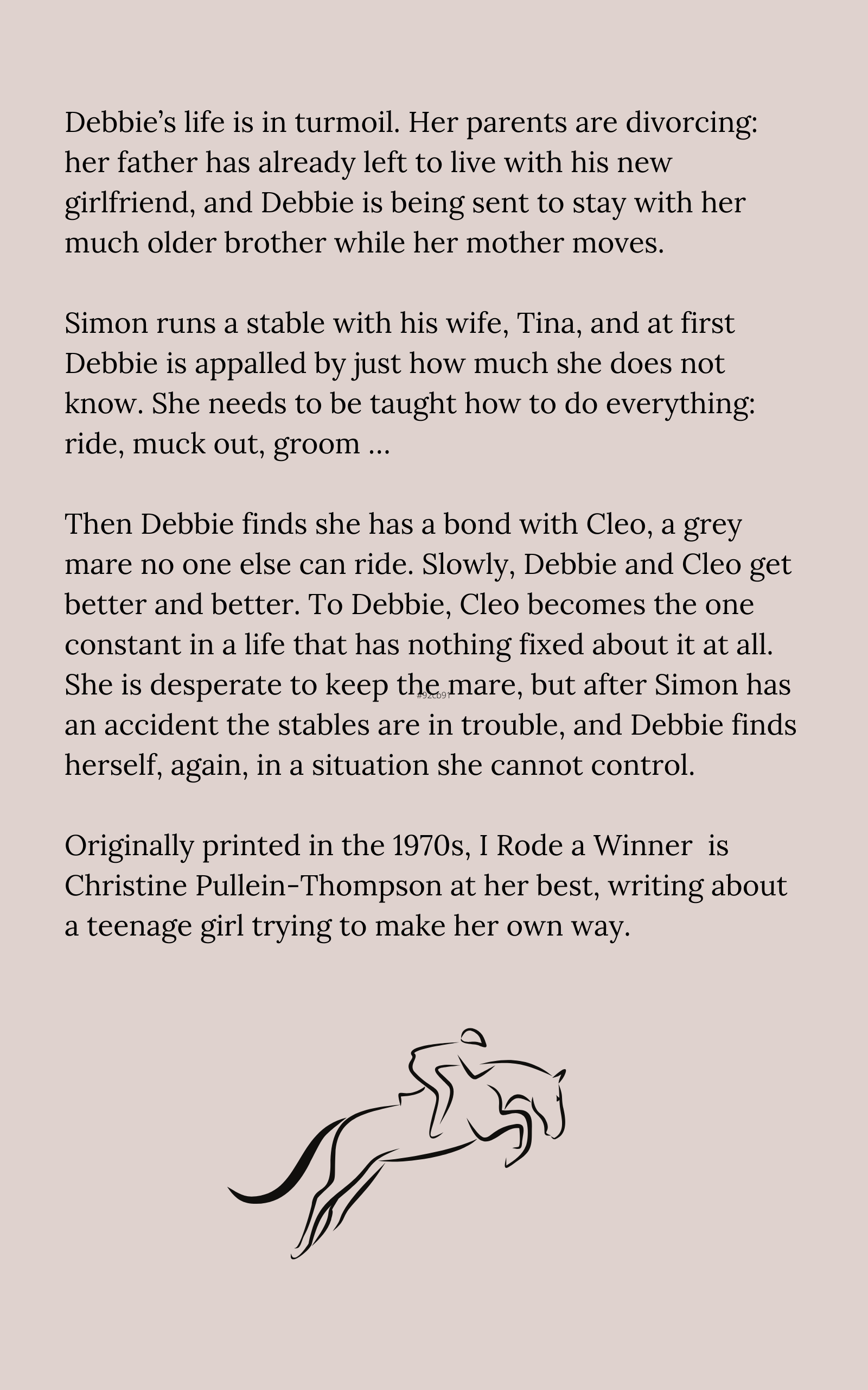 Originally printed in the 1970s, I Rode a Winner is Christine Pullein-Thompson at her best, writing about a teenage girl trying to make her own way.