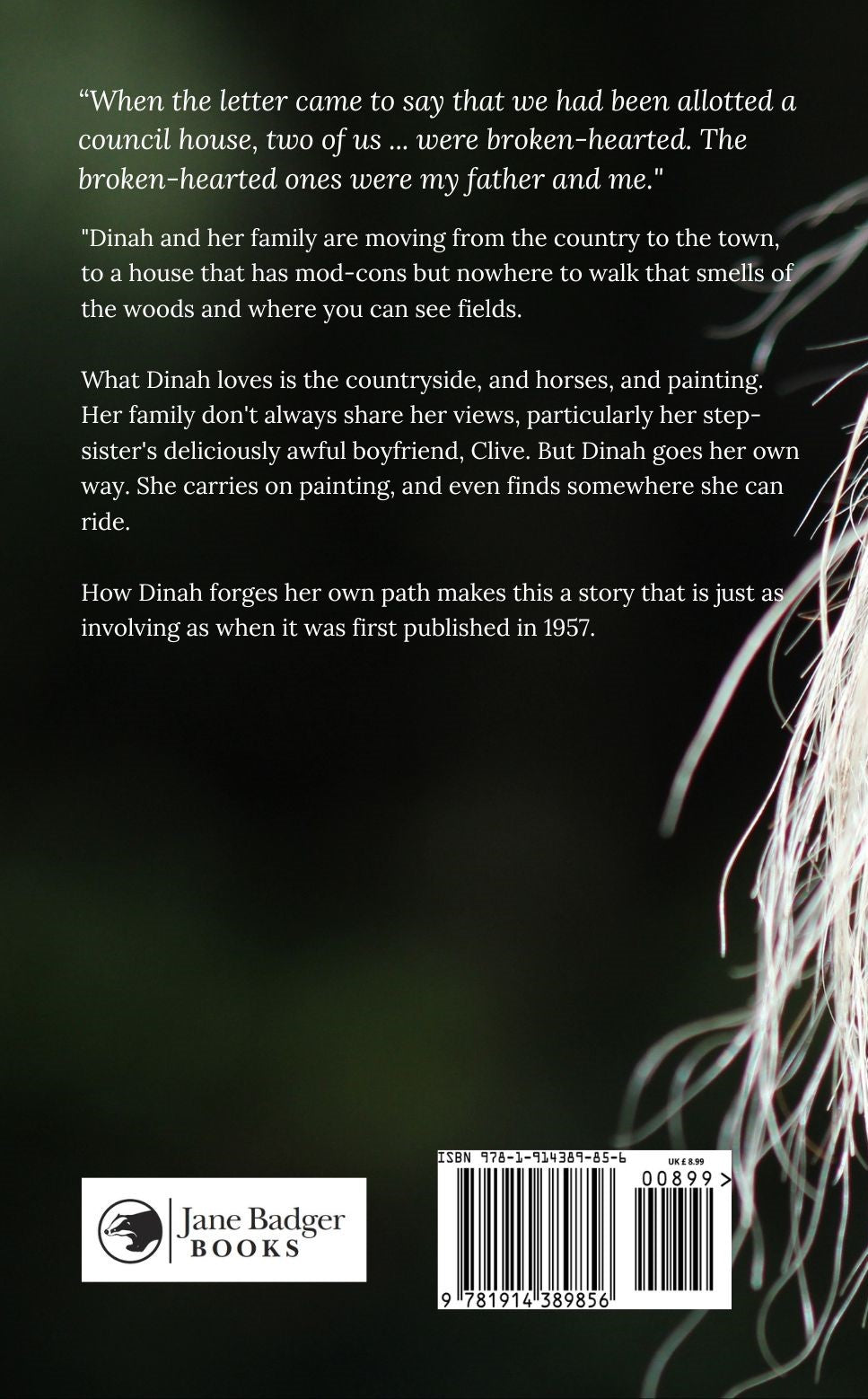 Dinah and her family are moving from the country to the town, to a house that has mod-cons but nowhere to walk that smells of the woods and where you can see fields. What Dinah loves is the countryside, and horses, and painting. Her family don't always share her views, particularly her step-sister's deliciously awful boyfriend, Clive. But Dinah goes her own way. She carries on painting, and even finds somewhere she can ride. How Dinah forges her own path makes this a story that is just as involving as when it was first published in 1957.