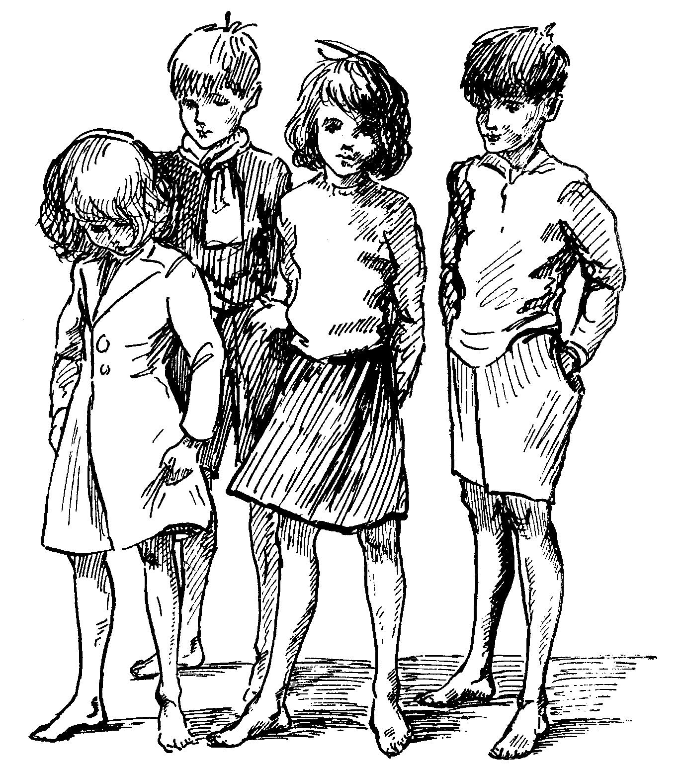 Aunt Pamela said that we must leave Claymore, but John explained that he had gone down the rat’s hole and it probably went under the wall and came up in the next-door garden, and that if the next-door people tried to catch Claymore he would bite them and they would get blood-poisoning and Aunt Pamela would be responsible because we are too young to be fined or put in prison or hanged or anything. Aunt Pamela said that she had said from the beginning that Claymore wasn’t a suitable pet; we had better hurry up and find him, she said, and she didn’t know what Uncle Gerald would say, and it was a good thing that John was going to school to mix with other boys. Then, after one more look at the ruins of the Wendy House, she and Robin went in because of the damp.