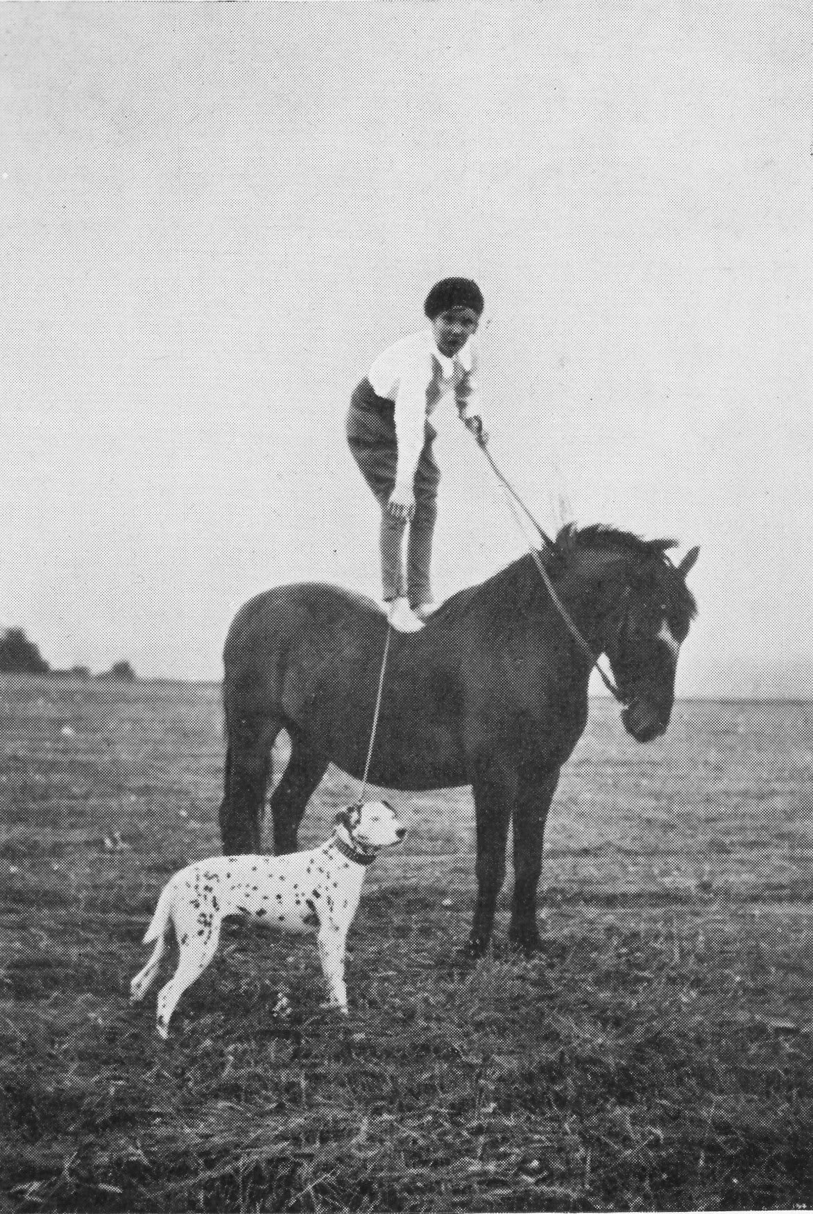 Roger gave up any pretence at indifference and stared with all his might. He had never seen anything so exciting before. There she stood with her bare feet planted on the pony’s back, her slim blue-clad body poised unconcernedly, one hand shading her eyes as she watched the oncoming train, and her left hand still holding the reins, which were stretched to their furthest limit.