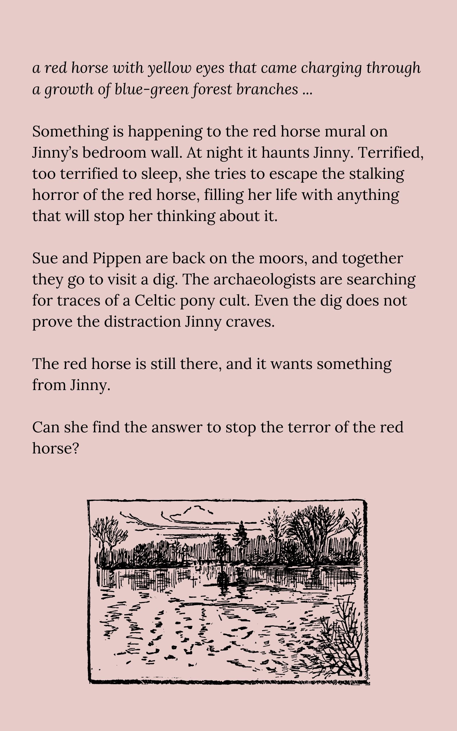 Sue and Pippen are back on the moors, and together they go to visit a dig. The archaeologists are searching for traces of a Celtic pony cult. Even the dig does not prove the distraction Jinny craves. The red horse is still there, and it wants something from Jinny.