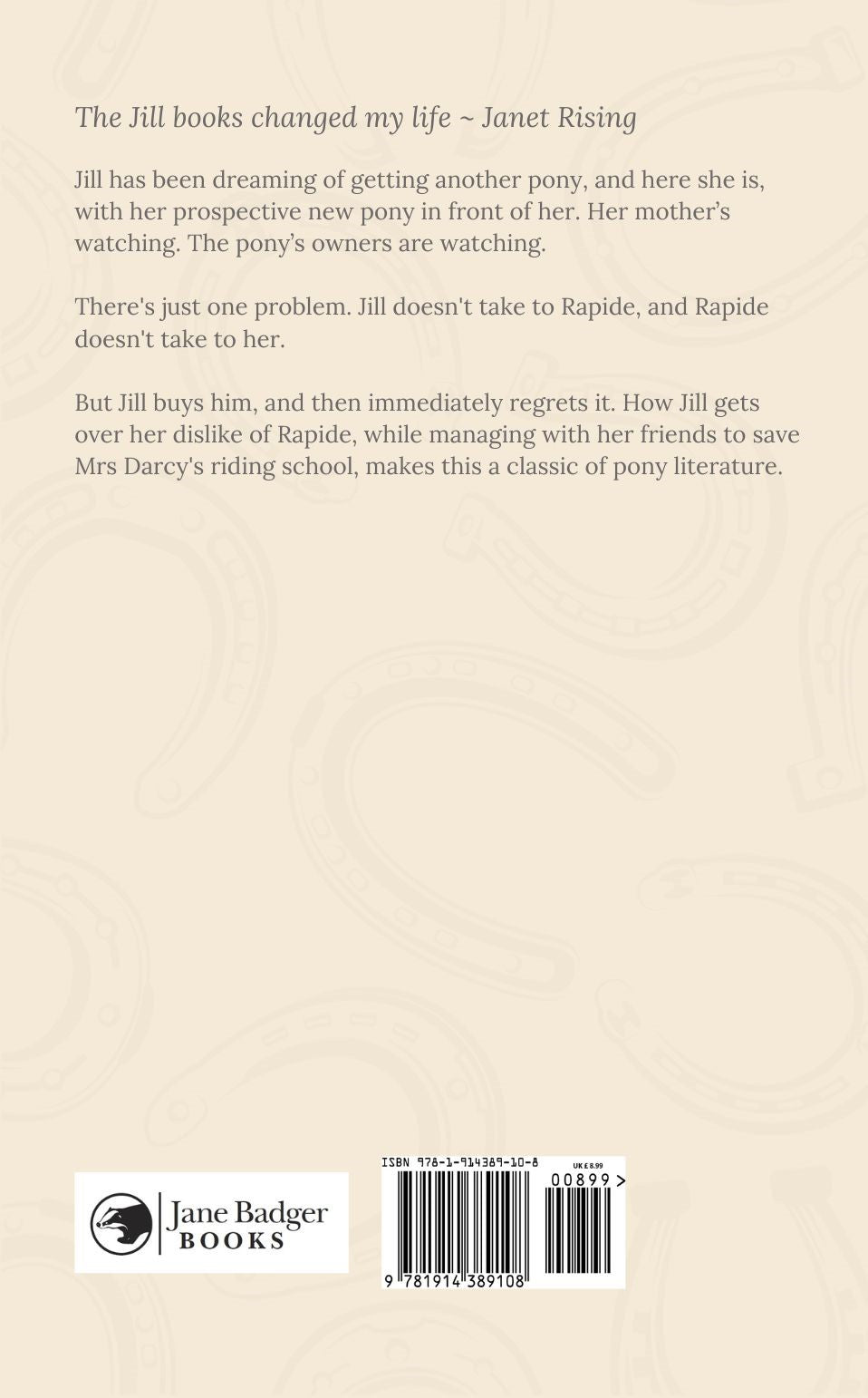 Jill has been dreaming of getting another pony, and here she is, with her prospective new pony in front of her. There's just one problem. Jill doesn't take to Rapide, and Rapide doesn't take to her. But Jill buys him, and then immediately regrets it. How Jill gets over her dislike of Rapide, while managing with her friends to save Mrs Darcy's riding school, makes this a classic of pony literature.