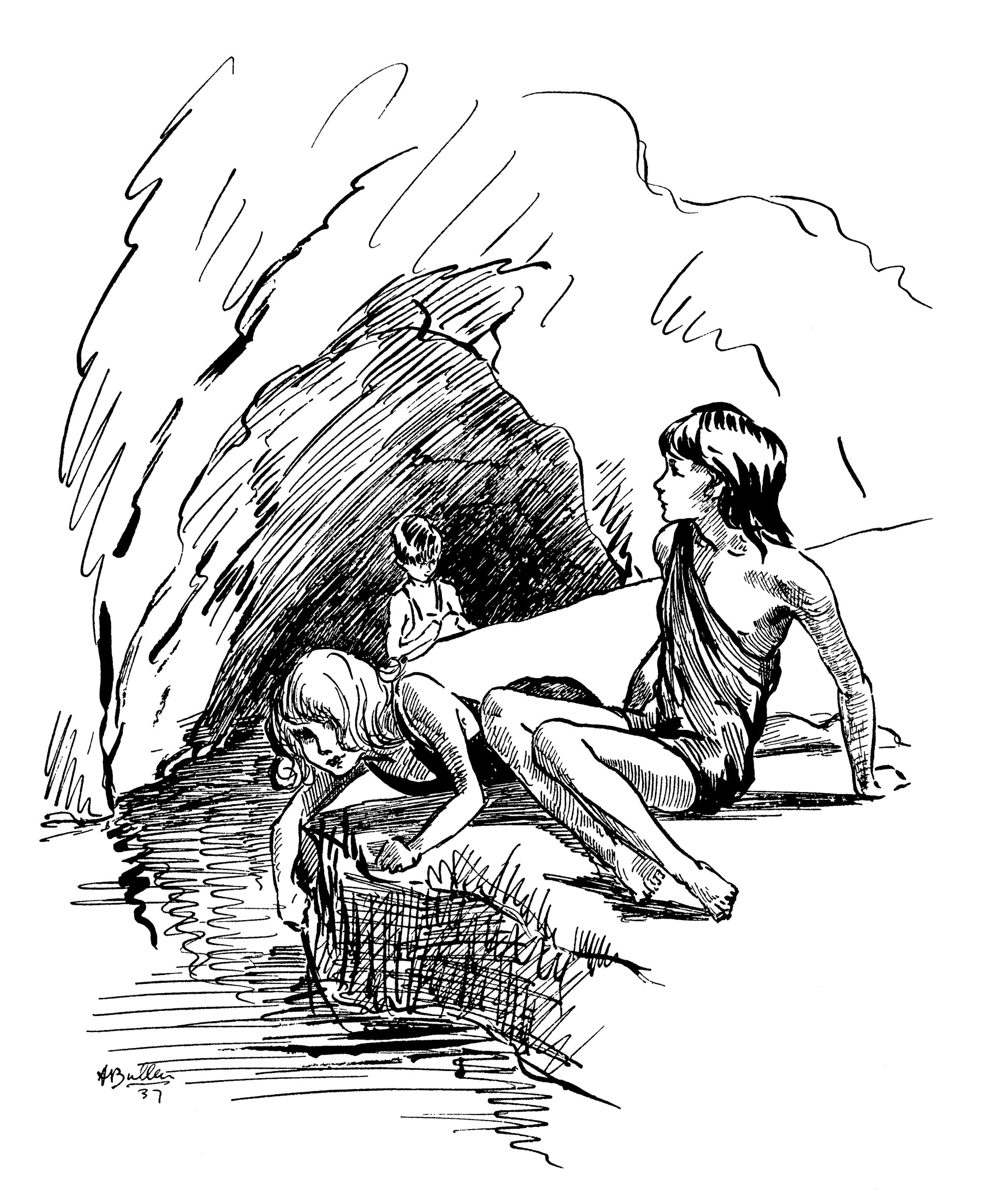 We did feel awful. I stayed awake a long time that night thinking of Roid House and imagining what it was like. I imagined a tall gloomy house like barracks, standing under a black stony mountain; and rain pouring down all day; and the stern professor, who would give one glance from under his bushy black eyebrows and John would eat up his porridge. I imagined our three rough wild cousins chasing us about the house and pinching and hitting us, and I must say I did wish then that we hadn’t been so tiresome. For a bit I wondered whether, supposing we promised faithfully never to be tiresome again, Mummy would change her mind and let us go to Frinton, but then I thought that if we did make a promise like that, we should never be able to keep it, because the tiresome things we do really aren’t our fault: we can’t help our hair sticking up, and our feet clumping on the stairs, and always falling down when our clothes are clean, and having loud voices. It’s all very well for Robin—his hair curls, and his voice doesn’t shout naturally, and he doesn’t fall down because some one always takes his hand and says, “Come along, darling…”
