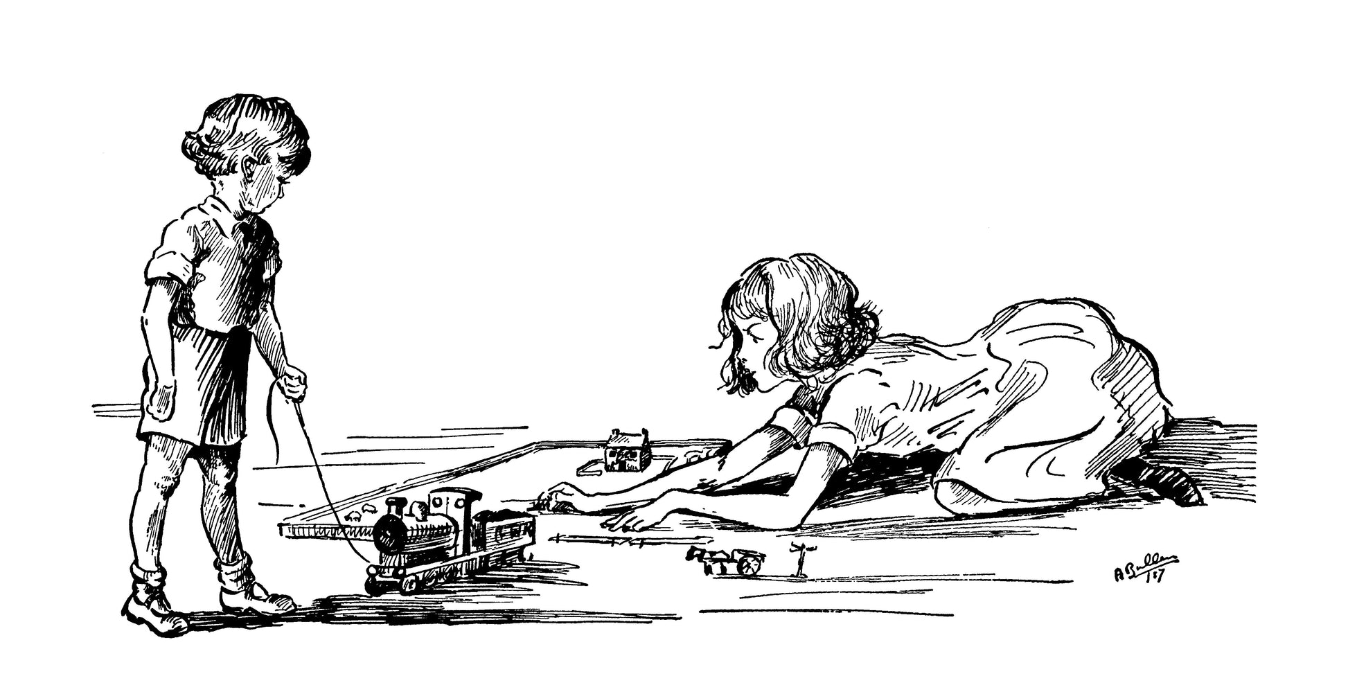It was Robin’s nurse who told us. Robin is Aunt Pamela’s child and, as Aunt Pamela and our mother are sisters, he is our first cousin. He is younger than we are and we are always made to give in to him; even when he steps on my farmyard things Nanny says that it is my fault for spreading them out so, and, of course, that makes him think that he can step anywhere and even pull his beastly wooden train straight over my beautiful hedges.